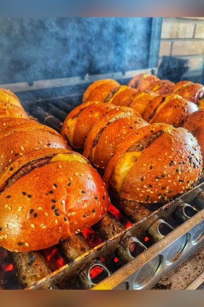Hamburguer Angus na brasa (carne 150g, queijo cheddar, pão brioche)